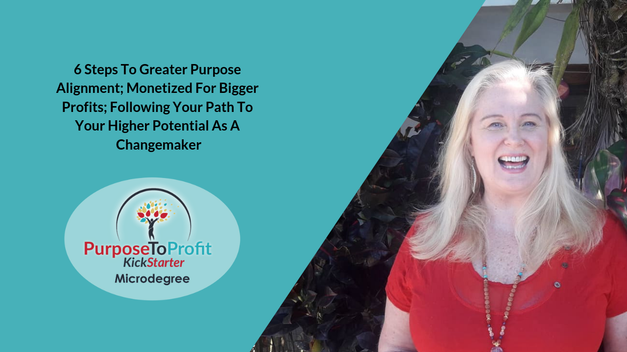 This is why we have launched a brand new microdegree called Purpose To Profit KickStarter: 6 Steps To Greater Purpose Alignment; Monetized For Bigger Profits; Following Your Path To Your Higher Potential As A Changemaker